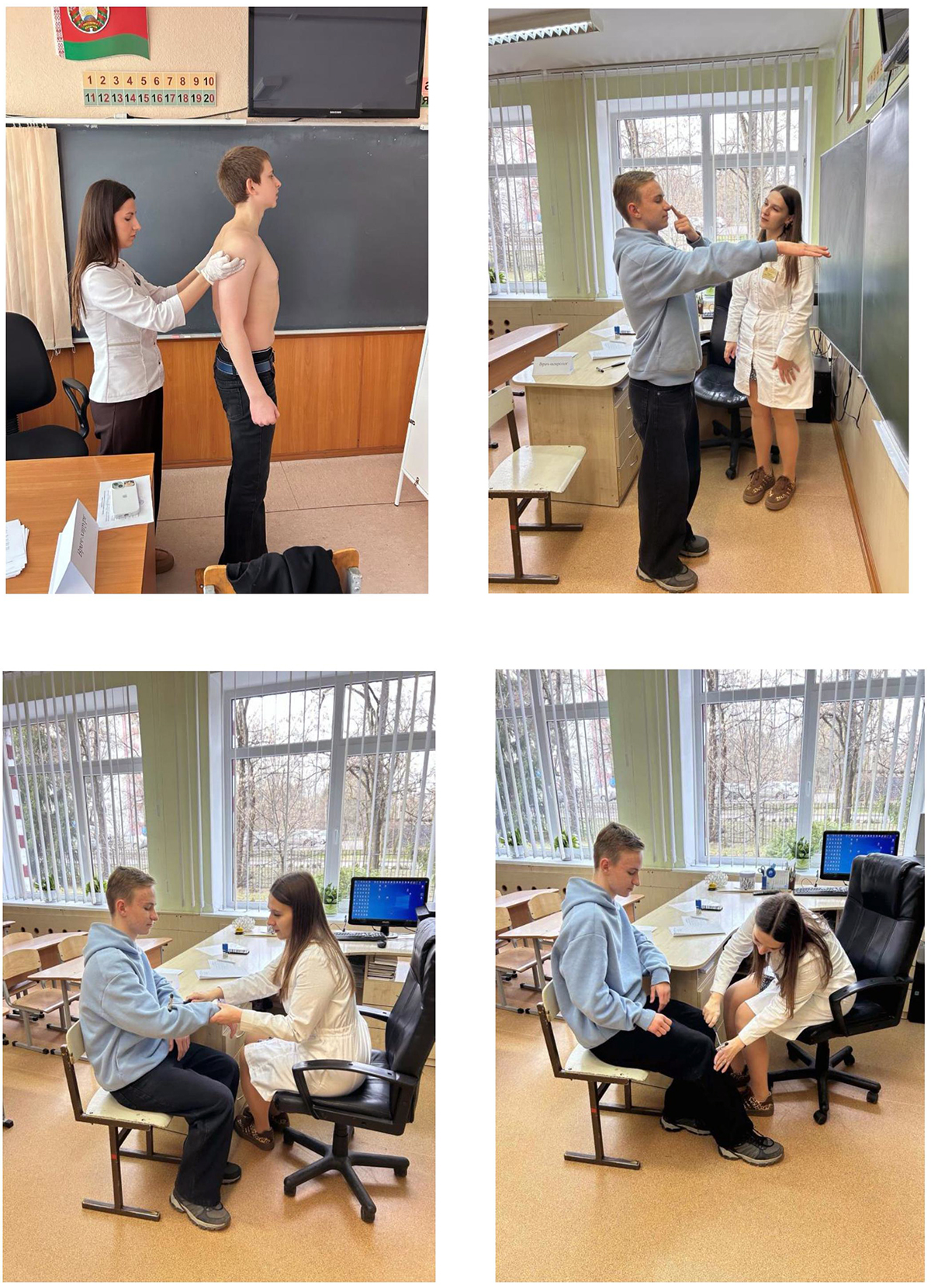 В рамках профилактического проекта «Брест – здоровый город!» 26.03.2025 года сотрудниками учреждения здравоохранения ГУЗ «Брестская городская детская поликлиника №3» на базе ГУО «Гимназия №6 имени Жукова Г.К.» для учащихся 9 класса поведена акция «Правильная осанка – залог здоровья!» направленная на профилактику заболеваний опорно-двигательного аппарата. Во время проведения акции врачом-хирургом Климовой Риммой Глебовной осмотрено 50 человек, впервые выявлен сколиоз у 12 человек (требуется подтверждение, рекомендовано дообследование) всего сколиоз у 23 человек, нарушение осанки у 25 человек, плоскостопие у 25 человек. Врачом-неврологом Боцохой Дианой Анатольевной осмотрено 52 человека, все осмотренные неврологически здоровы. Врачом-оториноларингологом Рубель Ариной Геннадьевной осмотрено 50 человек, из них 45 человек здоровы, острый ринит у 2 человек, острый фарингит у 1 человека, острый назофарингит у 1 человека, смещение носовой перегородки у 1 человека. Врачом-офтальмологом осмотрено 55 человек, из них 40 человек здоровы, у 13 человек – миопия, гиперметропия у 2 человек. Инструктором-валеологом проведена профилактическая беседа с учащимися на тему «Профилактика гриппа и респираторный этикет», охвачено 22 человека.